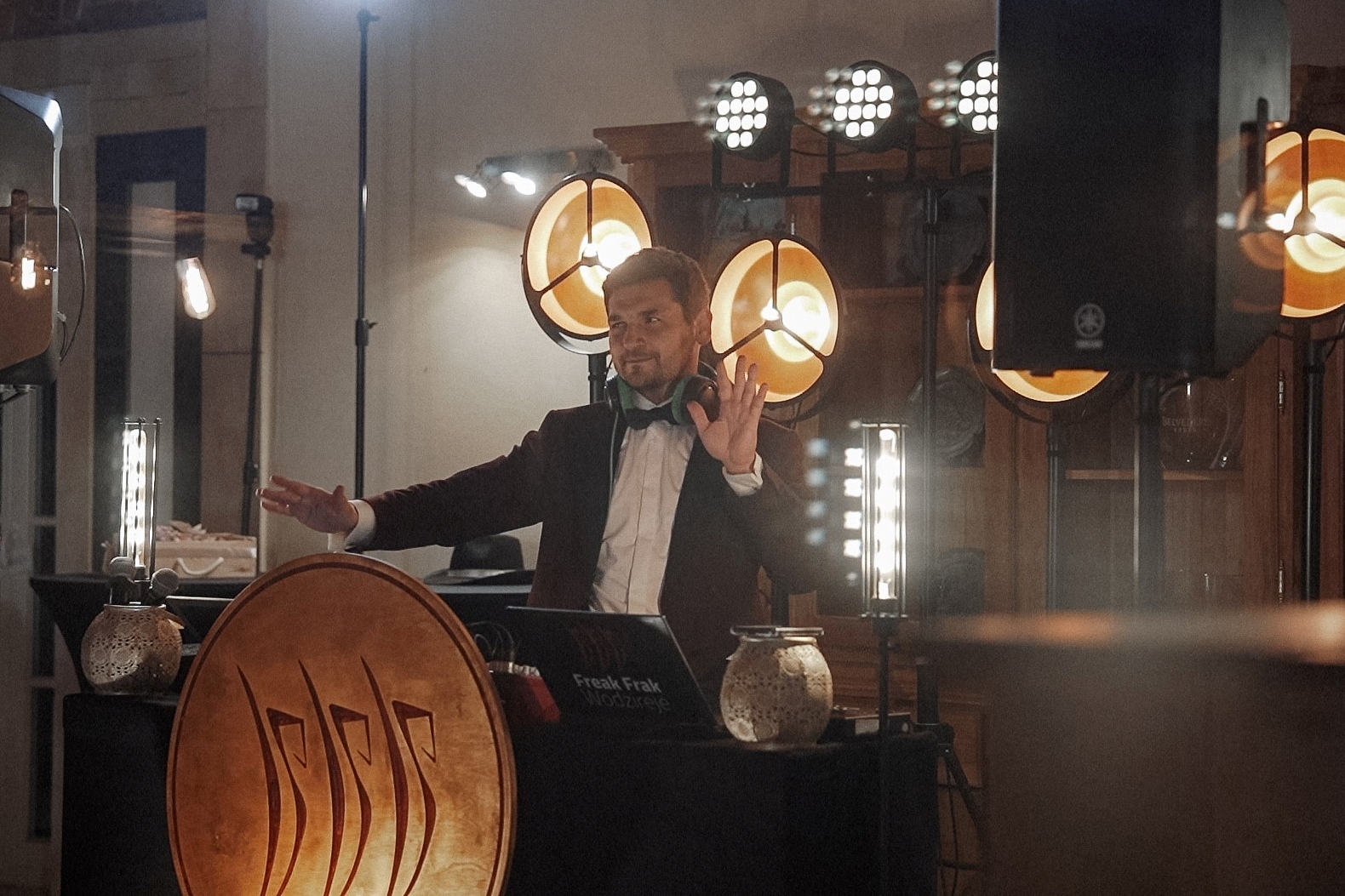 Mieliśmy okazję też współpracować ze świetnym DJ-em Sebastianem z ekipy Wodzireje Freak Frak. Fajnie jest, gdy wszyscy przy stole Operatorów nadajemy na tych samych falach. Tak było i teraz! Sebastian pięknie grał, a także był znakomitym wodzirejem. Rozumiał jak najbardziej, że poza świetną zabawą na parkiecie nasza Para chce mieć też zdjęcia z bliskimi, jak i zdjęcia z mini pleneru.